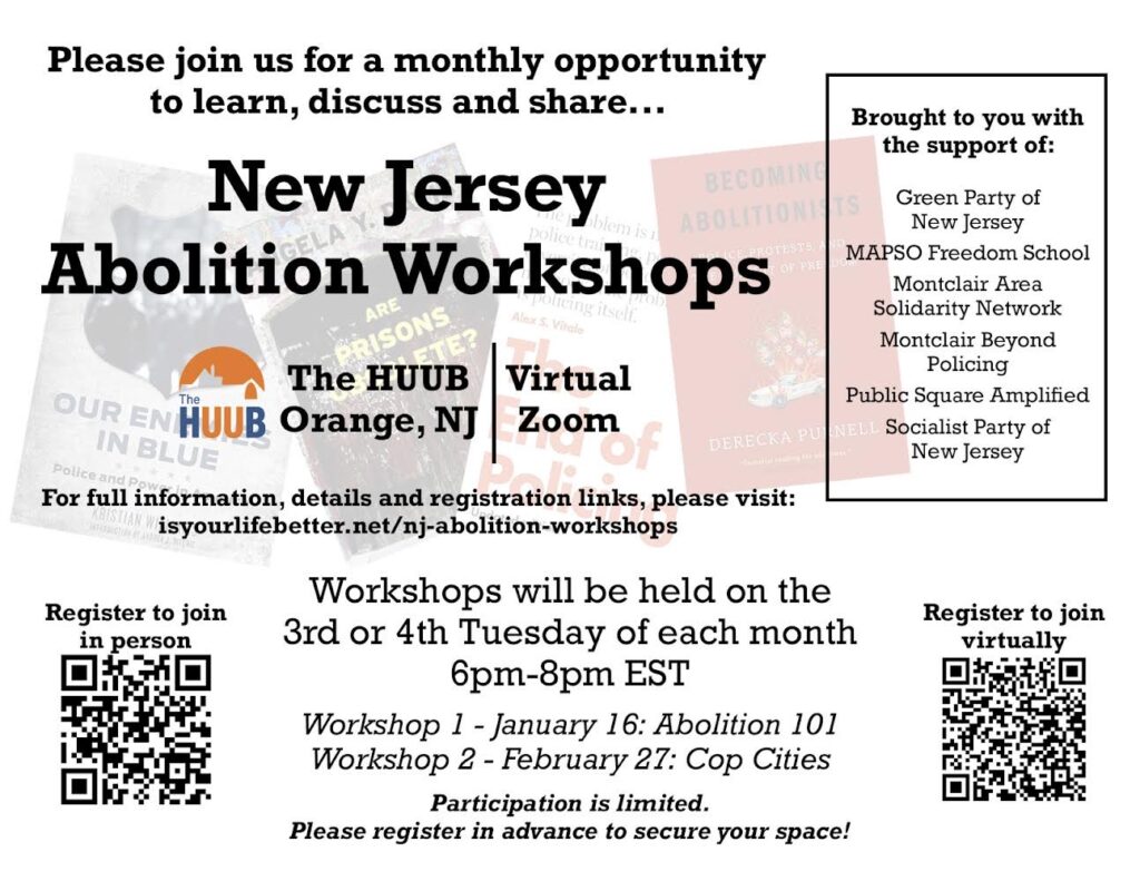 More information and full details, including the list of the potential topics for the full program can be found here: https://isyourlifebetter.net/nj-abolition-workshops/.